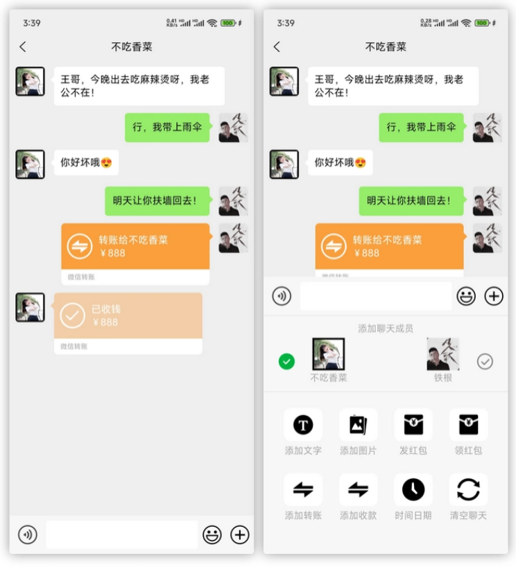 生成记录后直接截图,非常真实!支持自定义编辑对话、红包转账等!