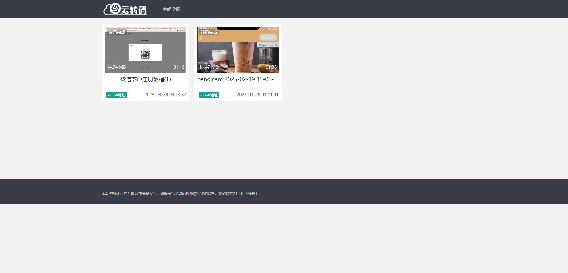 此源码全开源,这套程序部署后,在自己的网站上传的视频将会被自动切成TS格式使用M3U8播放器,完全不用担心视频太大,解决了不是MP4 H.264制式在浏览器不能播放的问题
