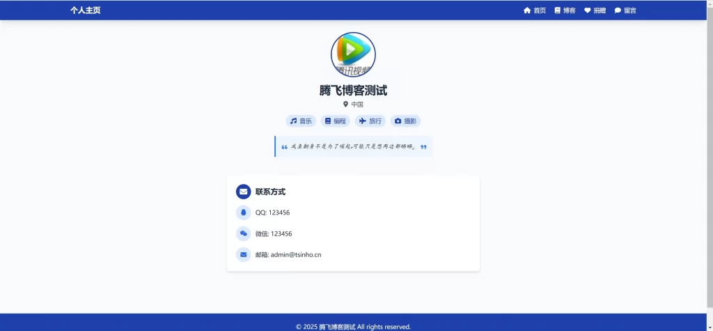 这是一款个人博客系统前后端开源源码,并且带有后台版本,这款源码很简约,前台有个人主页、文章、留言、赞助等功能,后台功能也丰富,腾飞博客简单的测试了,喜欢的自行部署吧!