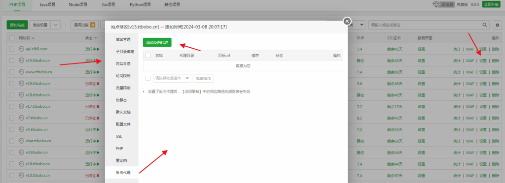 6、建立反代访问,通过网址访问,目录可随便建哪里都可以,网站目录不需要域名绑定,只需要设置访问的域名反代。