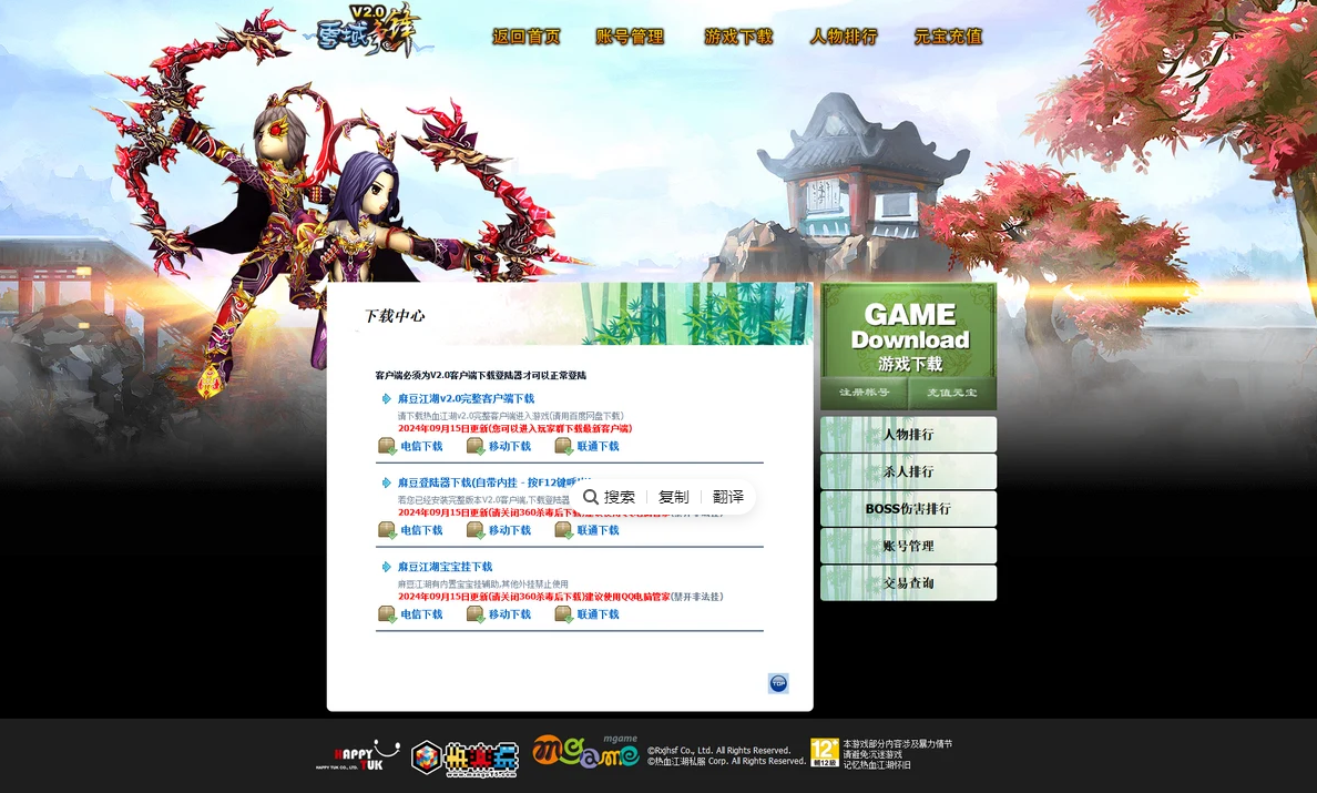 经典热血江湖V2.0商业修复联网版+服务端+百宝阁+客户端+GM工具+宝宝挂+配套网页端+架设教程