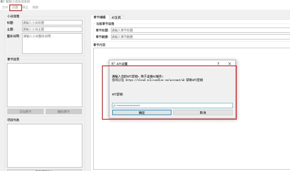 - 输入您的AI服务API密钥(推荐使用硅基流动提供的API)