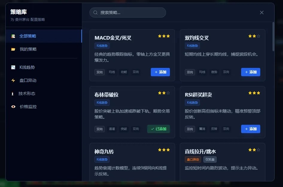 ● 🧠 策略军火库大扩容:除了大家最爱的神奇九转,又一口气增加了 10 多种主流策略(双均线、MACD、RSI、布林带等),总有一款适合你。