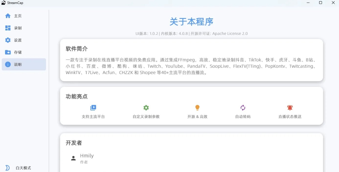 项目地址:https://github.com/ihmily/StreamCap/