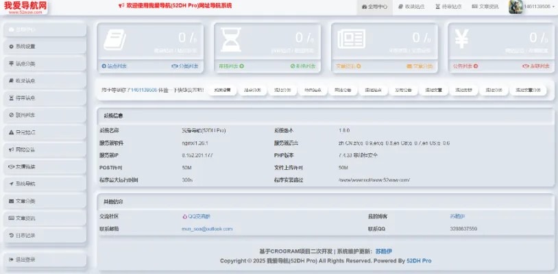 我爱导航(52DH Pro)网址导航系统V2.0.5是由苏酷伊基于SiteHub项目二次开发并免费发布的开源免费的网址导航系统,在52DH Pro_V1.1.1版本上优化前端UI显示,新增多种功能和优化后端管理中心。52DH Pro网址导航系统以**的性能体验,完善的安全保障,专业的技术支持,持续创新的产品理念,不断优化的系统功能,致力打造更专业的网站网址导航系统。