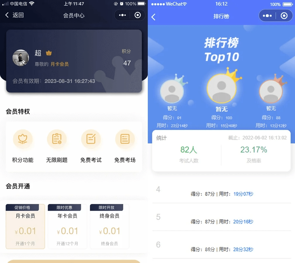 考试包含学员考试排行、错题记录,便于跟踪学员学习情况。