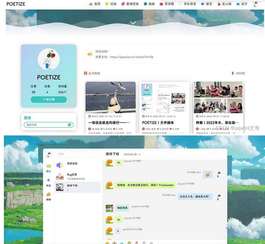 POETIZE个人博客系统源码 最美博客是一个基于SpringBoot、Vue2和Vue3开发的综合性个人博客系统。该系统不仅支持移动端自适应,还提供了完备的前台和后台管理功能。系统分为两个主要模块:博客系统和聊天室系统。