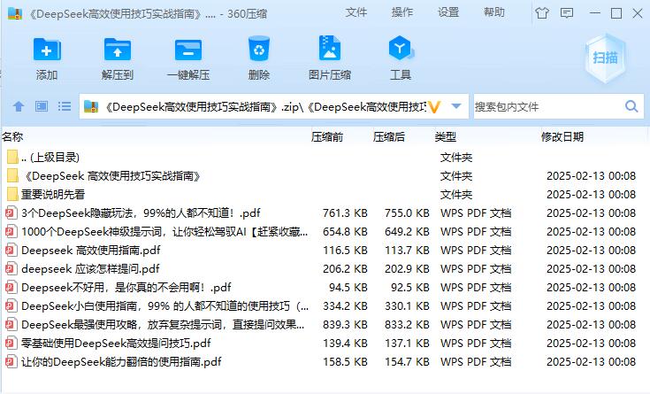 | 该内容主要是关于DeepSeek的高效使用技巧与实战指南的集合,包括从入门到精通的教程、隐藏玩法、使用攻略、神级提示词以及高效提问技巧等。 课程目录: ├── 《DeepSeek 高效使用技巧实战指南》 │ ├── 2、普通人怎么用上DeepSeek?.pdf │ ├── DeepSeek从入门到精通(20250204).pdf │ ├── 1、认识DeepSeek——新人必读.pdf │ ├── 3、应用:用DeepSeep解决各种具体问题,提升效率.pdf ├── 3个DeepSeek隐藏玩法,99%的人都不知道!.pdf ├── Deepseek不好用,是你真的不会用啊!.pdf ├── DeepSeek最强使用攻略,放弃复杂提示词,直接提问效果反而更好?.pdf ├── DeepSeek小白使用指南,99% 的人都不知道的使用技巧(建议收藏)docx.pdf ├── Deepseek 高效使用指南.pdf ├── deepseek 应该怎样提问.pdf ├── 1000个DeepSeek神级提示词,让你轻松驾驭AI【赶紧收藏】.pdf |